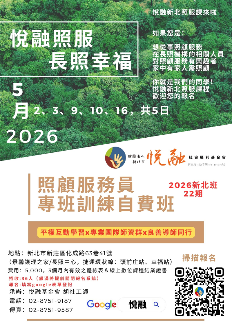● 主辦單位:新北市悅融社會福利基金會